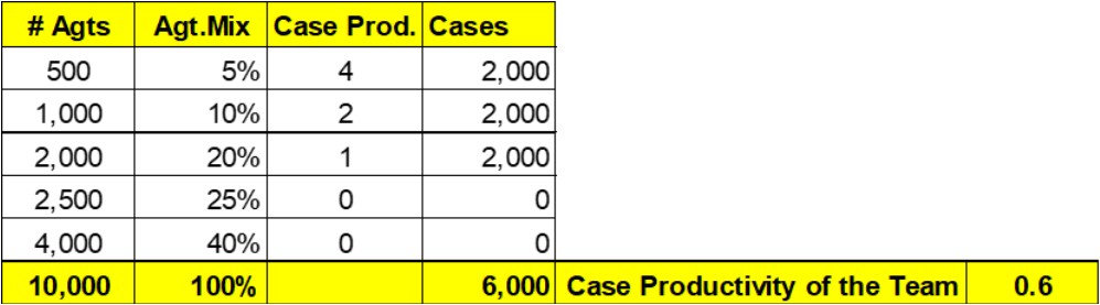 ends up close to the monthly case productivity of 0.59 cases per Agent.