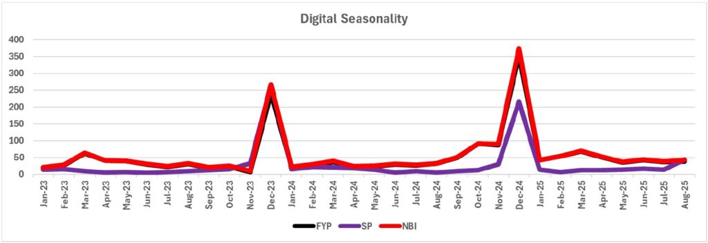 - Digital NBI is only 0.5% of the total NBI for the Industry for the months reviewed.