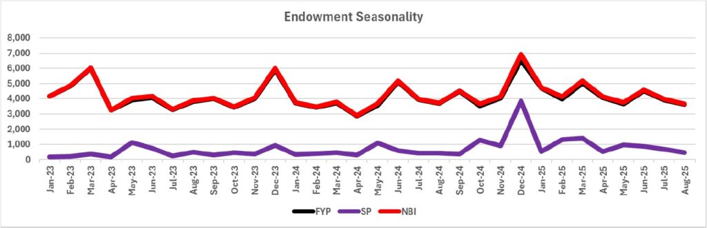 - Endowment Sales rank #1 for NBI at 40.8% of the total NBI for the Industry for the months reviewed. Thai customers prefer saving to other products. Are they overlooking their other important needs?