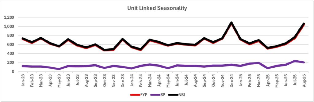 - Single Premium Unit Liked sales are smaller than I expected. Customers lost interest in the product due to design (it is a protection design rather than a savings design). I thought the HNW, financially more sophisticated customers, might “dip” into the market when they saw the right moment like they so with Bonds and Shares.