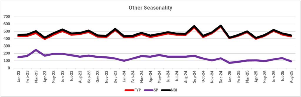 - Other Sales ranks #6 for NBI at 4.6% of the total NBI for the Industry for the months reviewed. The seasonality that the information I was given about this includes Group EB sold direct to Companies and Government Departments.