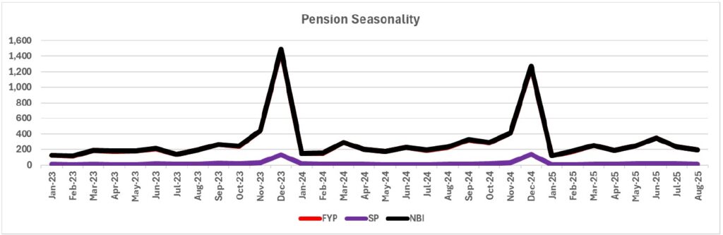 - Spikes occur every December, which I would suggest is the customer is busy maximizing their Life Insurance Tax relief and Distributors maxing out their Year-end results.
